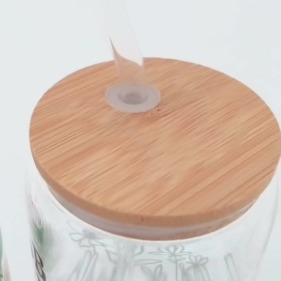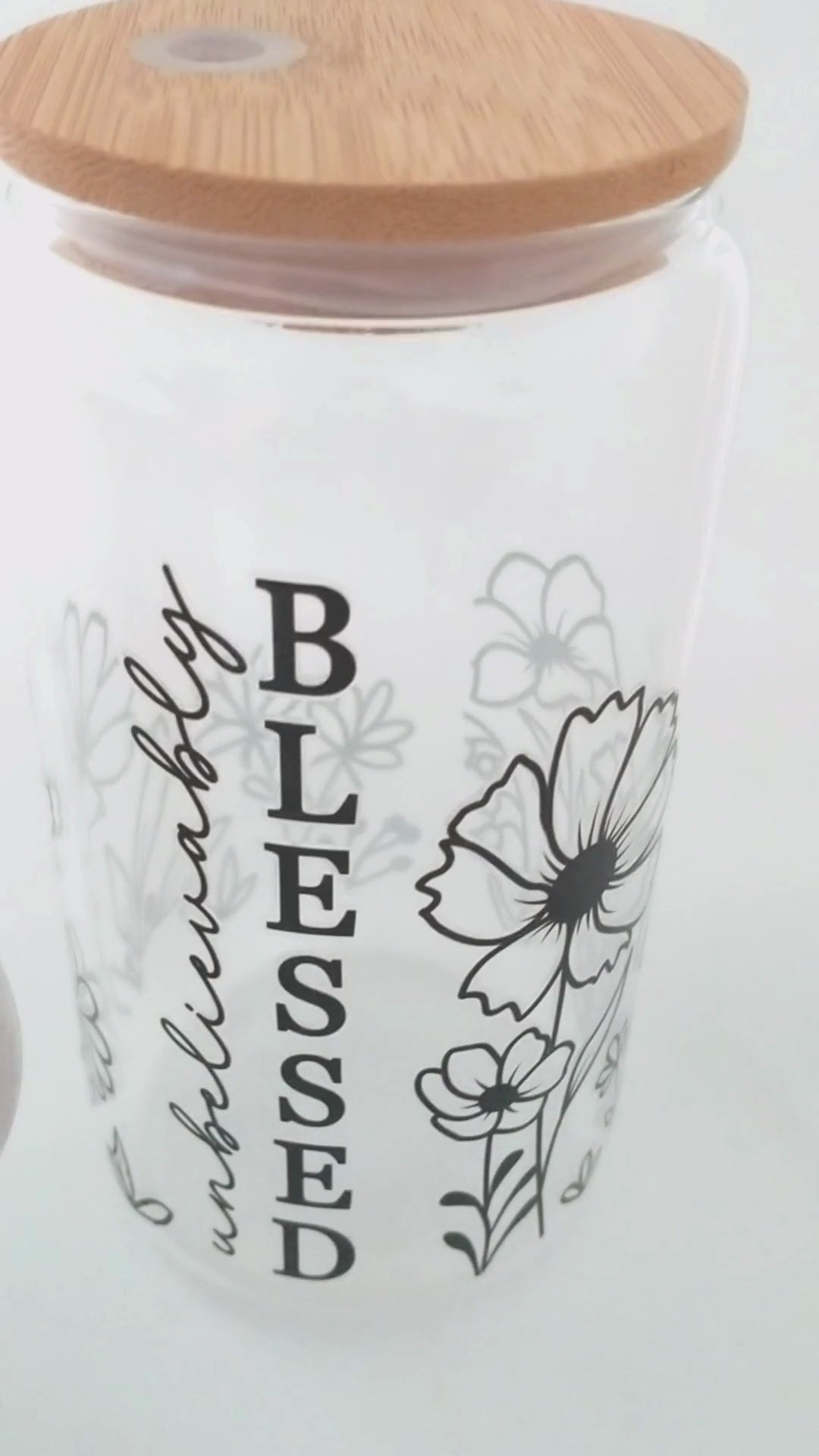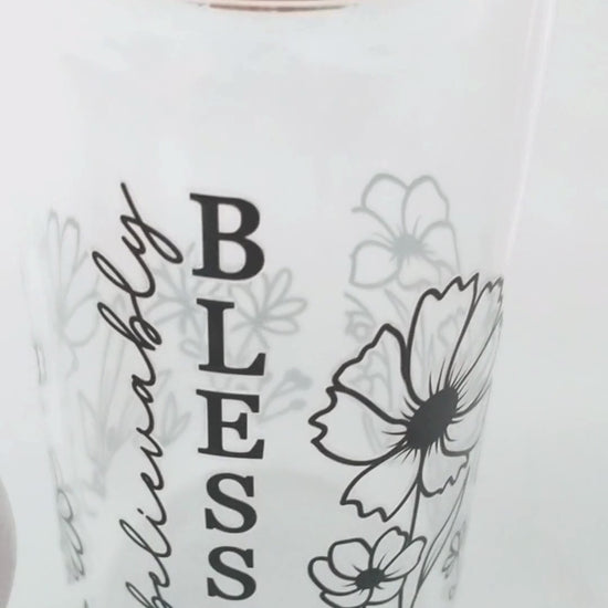 Unbelievably Blessed Glass with a Bamboo lid & glass straw 16 oz